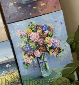 I’m so happy to have a small selection of my Rustic Bloom oil painting collection on display at the Bishop’s Stortford Tourist Information Centre this month.