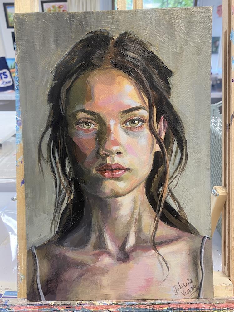 Here is a finished shot of this beautiful girl, painted in acrylics using the Zorn Palette.