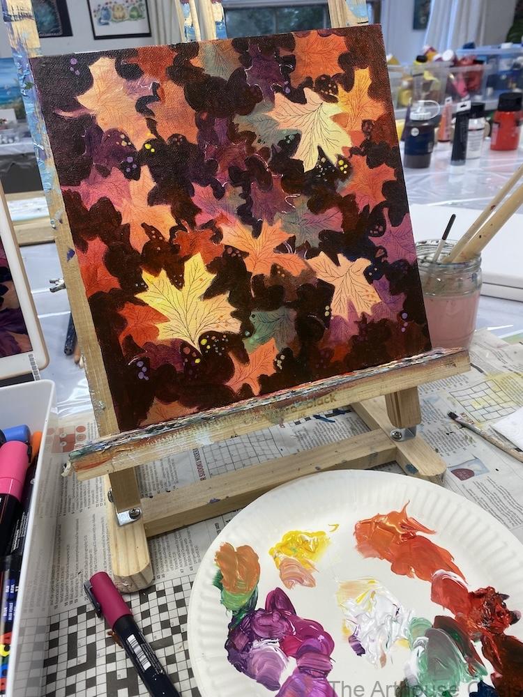 Students worked on capturing reflections, depth and seasonal warmth while learning how to simplify shapes.