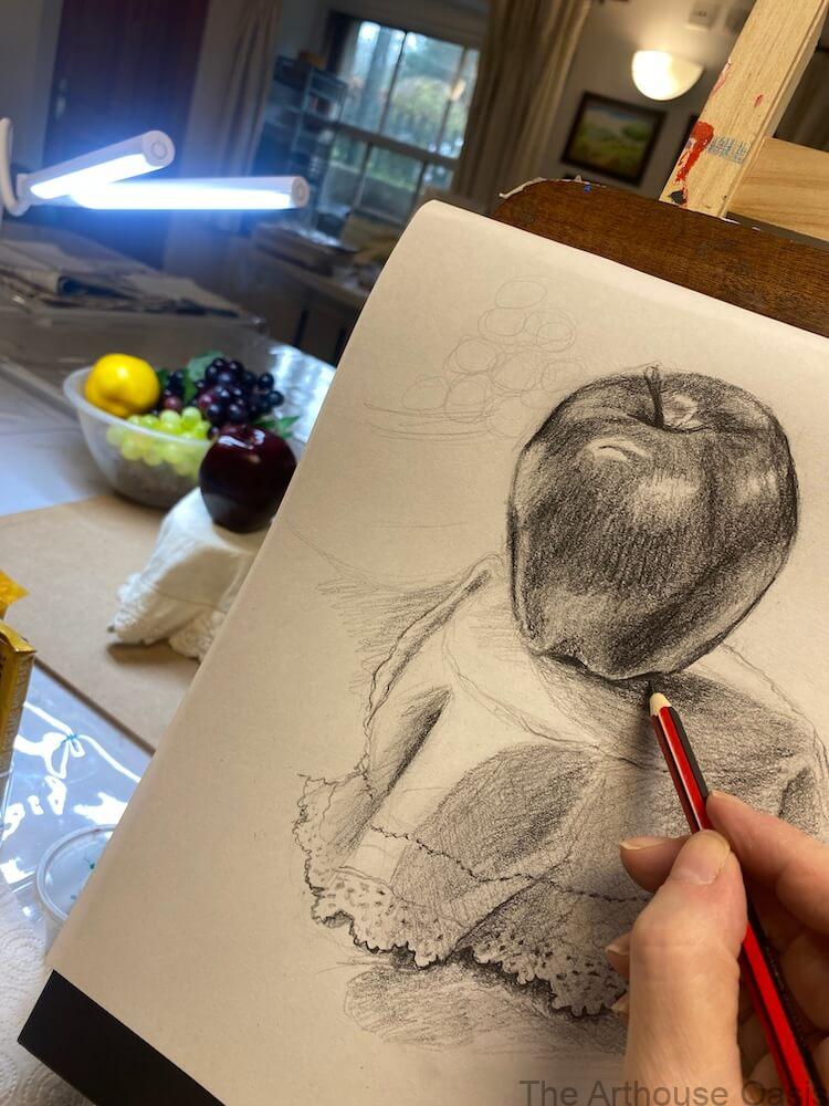 A pencil drawing session with my 14 year old artist, working from real objects and looking closely at light, shadow and shape.