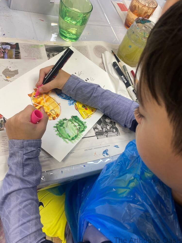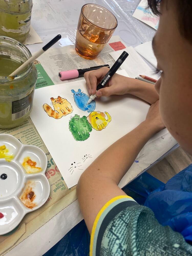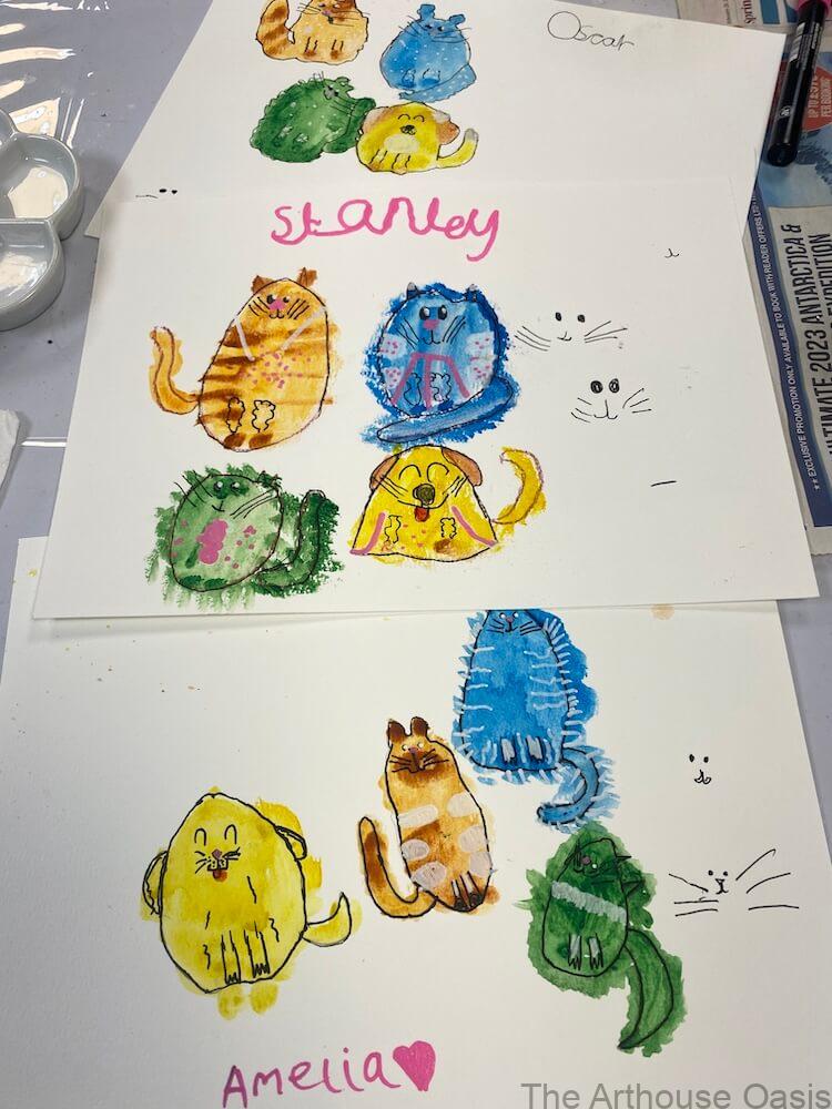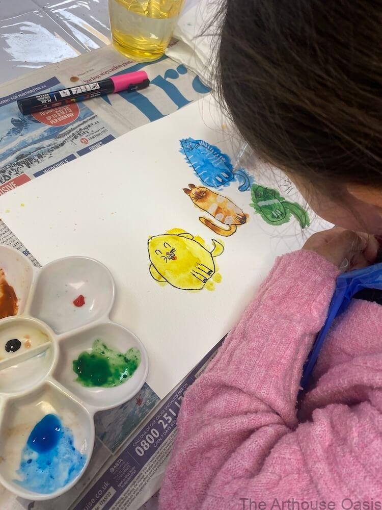 We give the children space to explore watercolour, pens and pencils while creating the most colourful, characterful cats (and a few other imaginative extras too!).