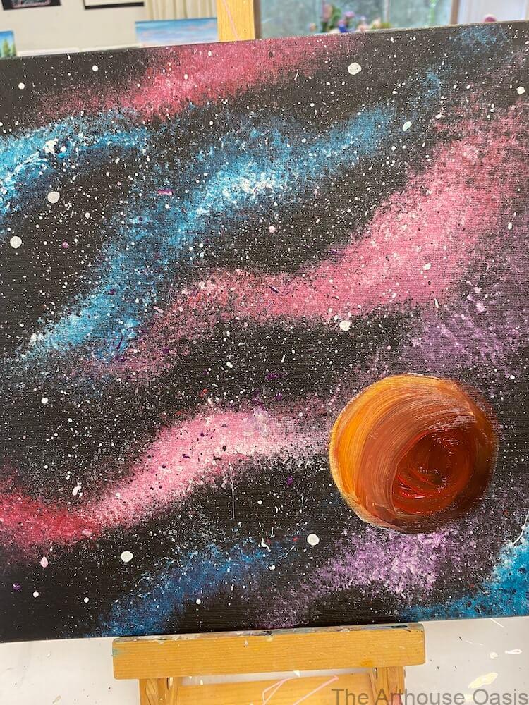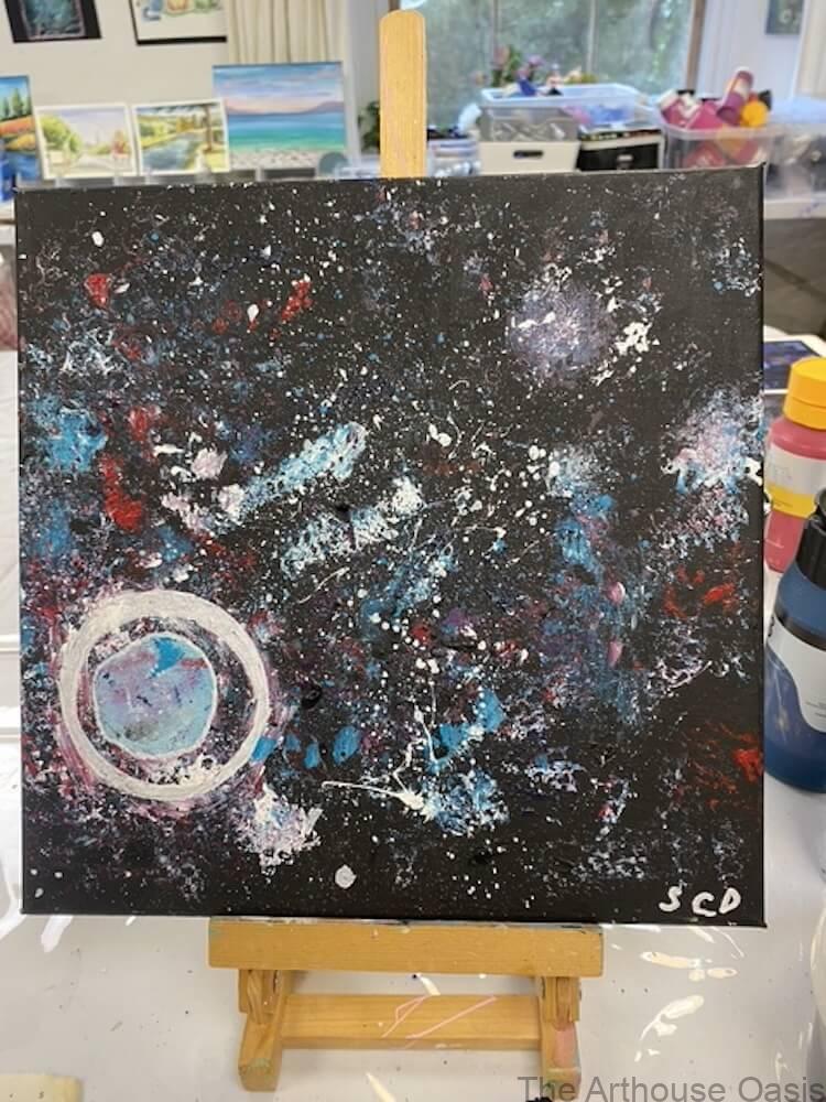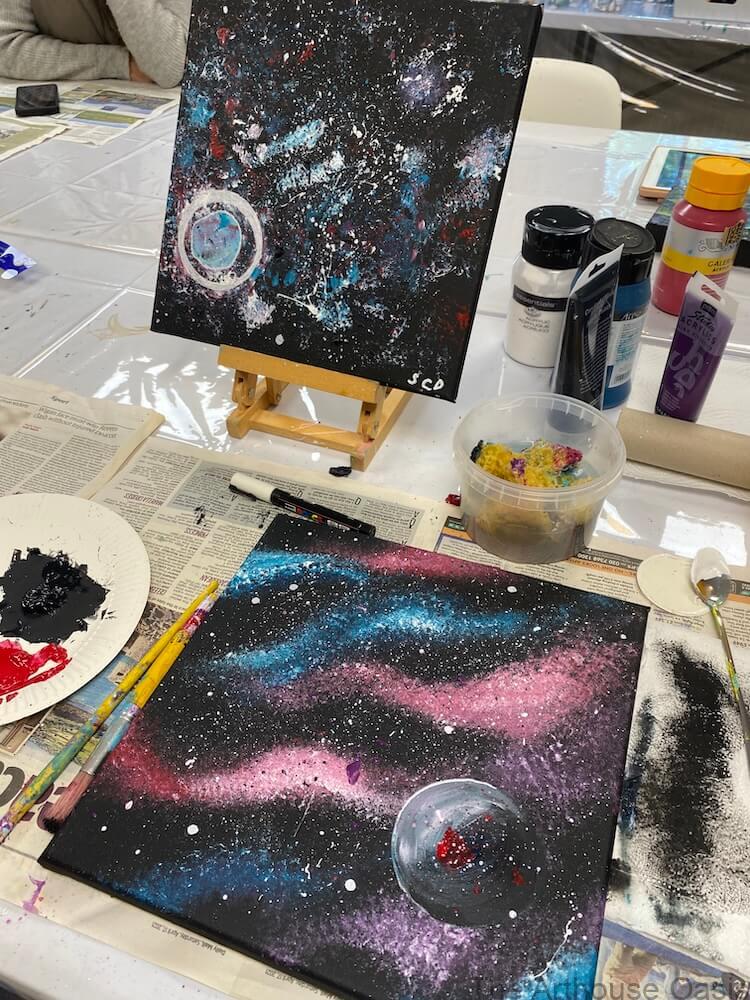 Our Younger Artists’ Galaxy Acrylics Workshop at The Arthouse Oasis in Bishop’s Stortford is a fantastic way for children and teens to explore their creativity while learning new painting techniques.