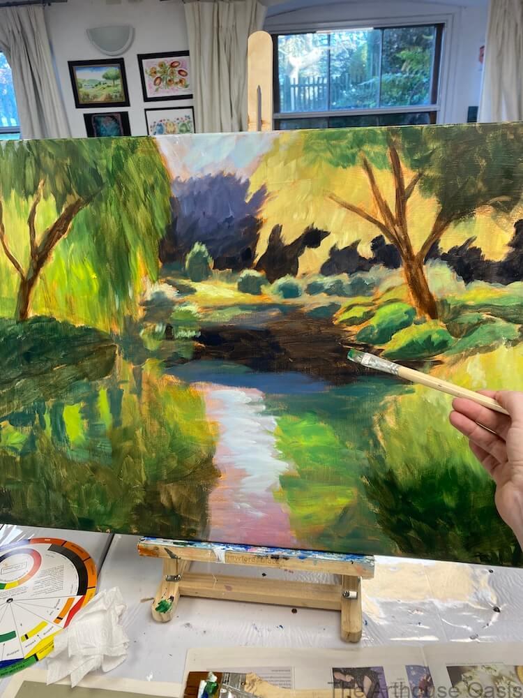 These large-scale paintings are part of a rolling project, giving artists the time and space to really explore a scene. The first session is all about loosening up, getting colour on the canvas, and letting the painting develop naturally over time.